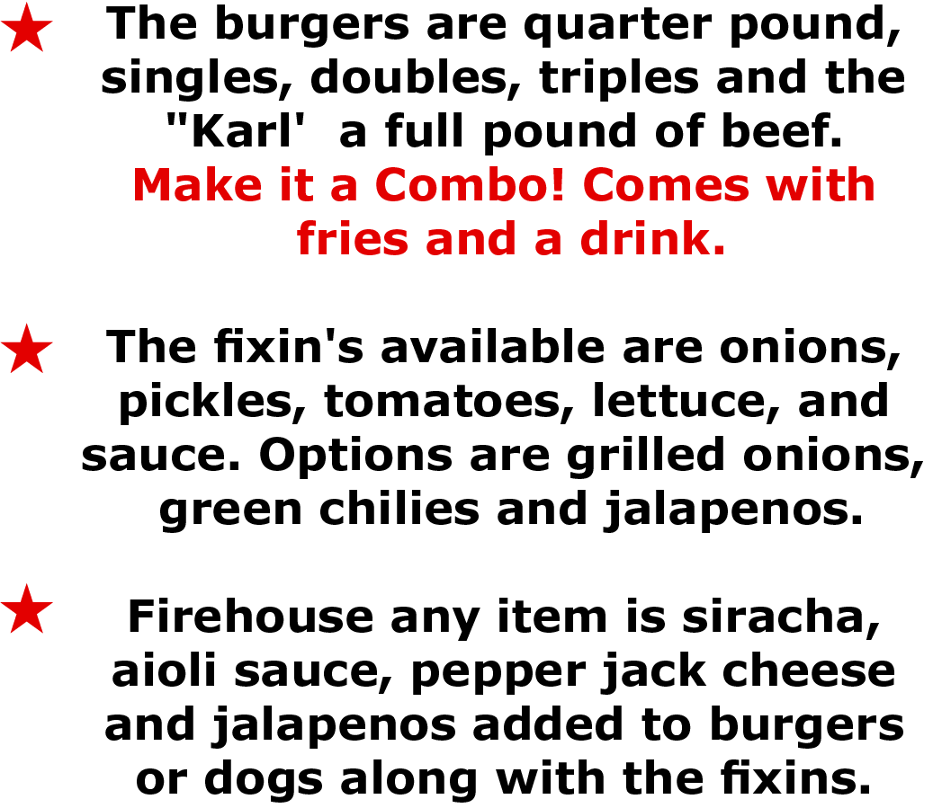 *We cook our hamburgers to a safe temperature of 155-165F. You are welcome to request "well-done" at the time of ordering.